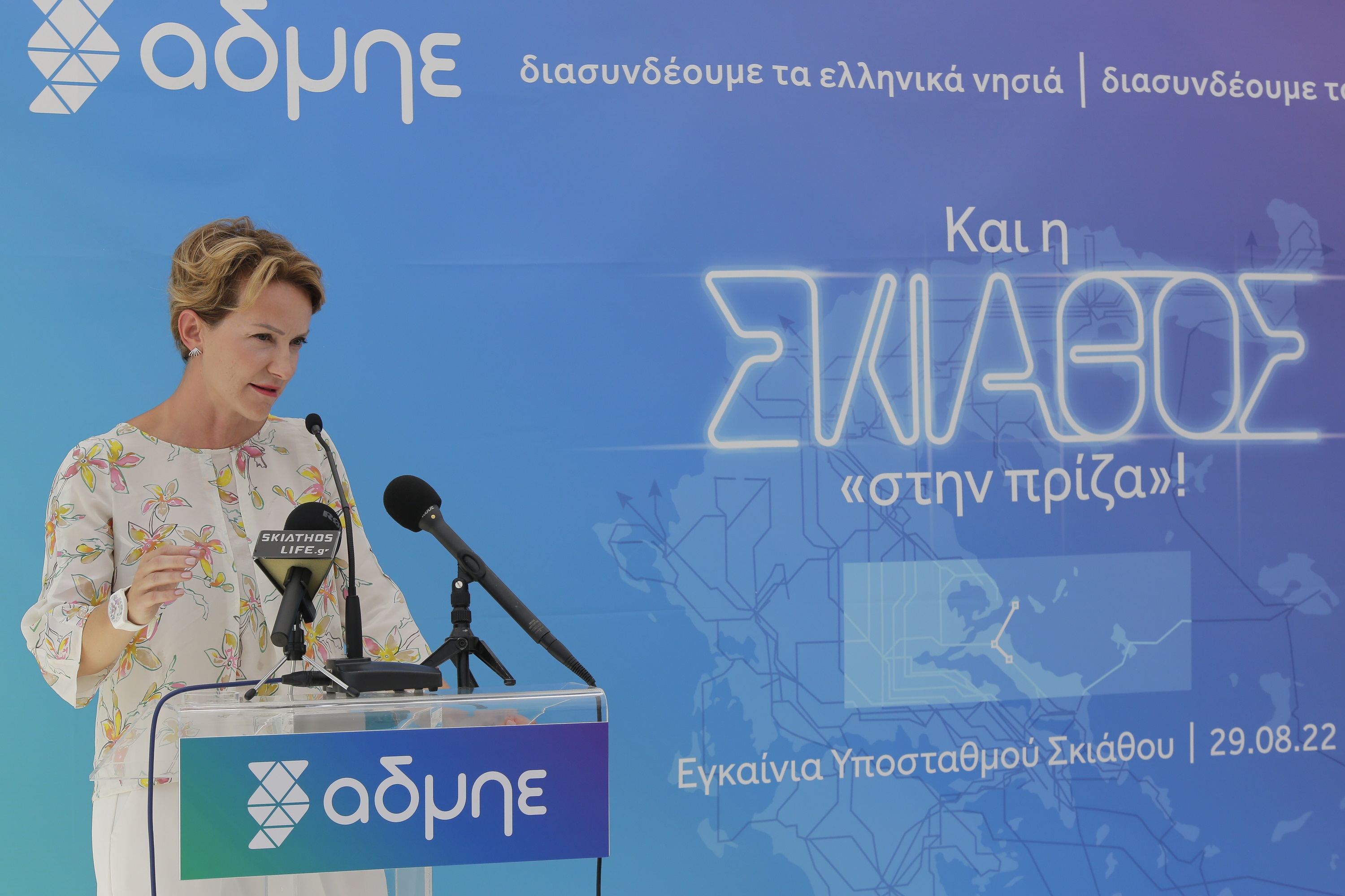Κατά τον χαιρετισμό που απηύθυνε στη διάρκεια των εγκαινίων, η Γενική Γραμματέας Ενέργειας και Ορυκτών Πρώτων Υλών κ. Αλεξάνδρα Σδούκου εξήρε την προσήλωση του Διαχειριστή στην υλοποίηση του προγράμματος νησιωτικών διασυνδέσεων. «Η ηλεκτρική διασύνδεση της Σκιάθου με την Εύβοια προσφέρει πλέον αδιάλειπτη ενεργειακή τροφοδότηση για όλες τις βόρειες Σποράδες. Είναι ένα έργο που θα αναβαθμίσει άμεσα την καθημερινότητα των κατοίκων αλλά και το τουριστικό προϊόν της περιοχής, δημιουργώντας νέες αναπτυξιακές προοπτικές. Συγχαρητήρια στον ΑΔΜΗΕ για την ταχεία και τεχνικά άρτια υλοποίηση του προγράμματος νησιωτικών διασυνδέσεων, οι οποίες αποτελούν κρίσιμες υποδομές για τη μετάβαση της χώρας στην εποχή της καθαρής ενέργειας».