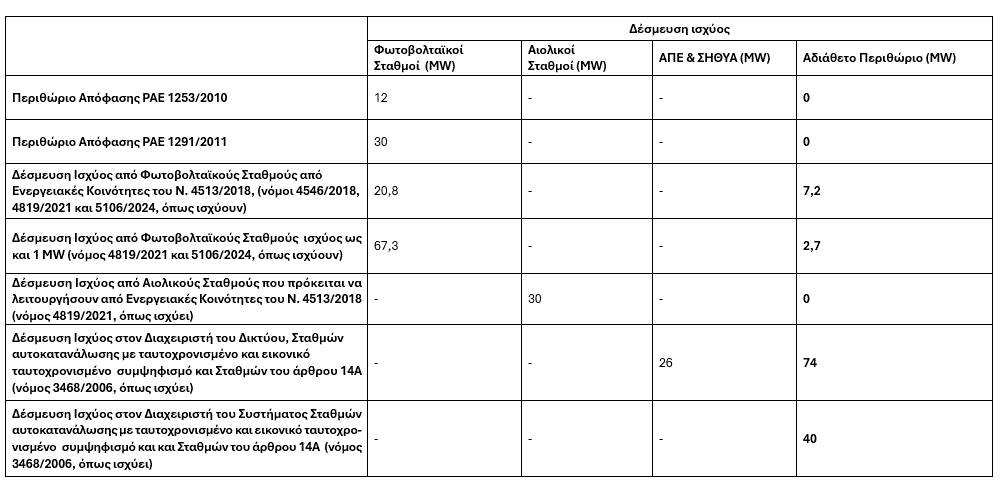 Οι αρμόδιοι Διαχειριστές (ΔΕΔΔΗΕ Α.Ε. και ΑΔΜΗΕ Α.Ε.), σε εφαρμογή της Υπουργικής Απόφασης ΥΠΕΝ/ΔΑΠΕΕΚ/74123/2971 (ΦΕΚ 3149/Β/30.07.2020), αναφορικά με τον καθορισμό του μεγίστου ορίου συνολικής ισχύος φωτοβολταϊκών σταθμών σε αγροτική γη εντός του οποίου είναι επιτρεπτή η εγκατάσταση φωτοβολταϊκού σταθμού ≤ 1MW σε αγροτική γη υψηλής παραγωγικότητας σε MW ανά Περιφερειακή Ενότητα, αναρτούν από κοινού Πίνακα με τα εναπομείναντα όρια ισχύος για φωτοβολταϊκούς σταθμούς ανά Περιφερειακή Ενότητα και θέτουν υπόψη των ενδιαφερομένων τα ακόλουθα: